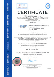 Systém bezpečnosti a ochrany zdraví při práci je certifikovaný podle požadavků normy ISO 45001.